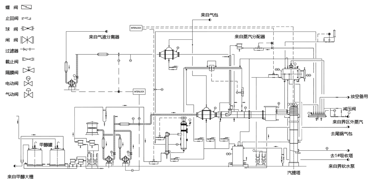 進料氣化及產品冷卻:進料汽化和產品急冷區(qū)由甲醇進料緩沖罐,進料閃蒸罐,洗滌水汽提塔,急冷塔、水汽提塔等組成。經閃蒸罐出來的介質溫度較高,能達到350℃,閥門主要材質由碳鋼及不銹鋼閥門組成。急冷塔介質溫度偏低,實際溫度能達到-110℃,閥門需要采用延長閥蓋結構,且液化介質殘留在中腔,溫度升高后壓力過大,需注意閥門必須設計卸壓孔。