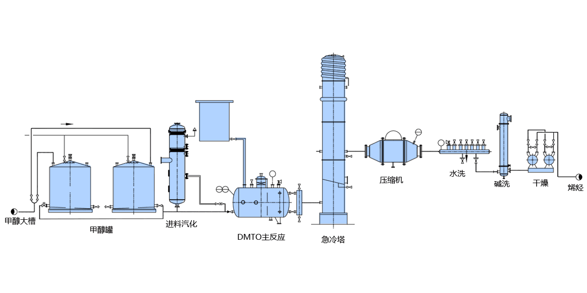 DMTO是以甲醇或天然氣替代石油做原料生產乙烯和丙烯的技術。乙烯、丙烯是當今世界最重要的化工產品,一直以來要消耗大量石油。用DMTO技術生產的乙烯和丙烯比石油為原料的更具有市場競爭力。DMTO工業(yè)化技術研發(fā)成功,對于減少我國石油進口、開辟我國烯烴產業(yè)新途徑具有重要意義。同時也標志著我國甲醇加工能力將由萬噸級裝置一舉跨越到百萬噸級大型裝置乙烯,丙烯。甲醇制取低碳烯烴(DMTO)工業(yè)化技術解決了煤制烯烴的技術瓶頸,是連接煤化工和石油化工的橋梁,為煤化工行業(yè)和煤制烯烴產業(yè)提供了有力的技術支撐。DMTO工業(yè)化技術可緩解我國石腦油資源的不足,使低碳烯烴生產原料多元化。