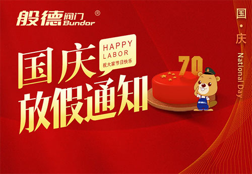 各位般德客戶、合作伙伴:中華人民共和國即將迎來70歲華誕,根據(jù)國務院關于法定節(jié)假日的規(guī)定,結合我公司實際情況,般德閥門科技有限公司2019年國慶節(jié)假期安排如下: