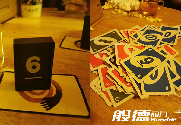 幾局刺激的狼人殺過后,大家開始玩“UNO”,這是一個(gè)新的桌游,工作人員為大家講了游戲規(guī)則之后,大家就開始自由“廝殺”,看誰手里的牌先出完,眼看著手里只剩一張牌了,轉(zhuǎn)眼又成了一把,大家笑聲連連,一局游戲玩了半個(gè)多小時(shí)才結(jié)束。